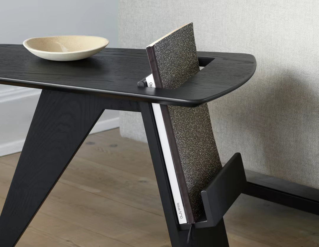 Designed in 1949, the Magazine Table is a functional poem. A sleek plywood surface rests over a sculpted base, and a built-in slotted shelf holds your reading materials with elegance. The interplay of curves and storage takes a practical moment (reaching for magazines) and transforms it into small-scale artistry.